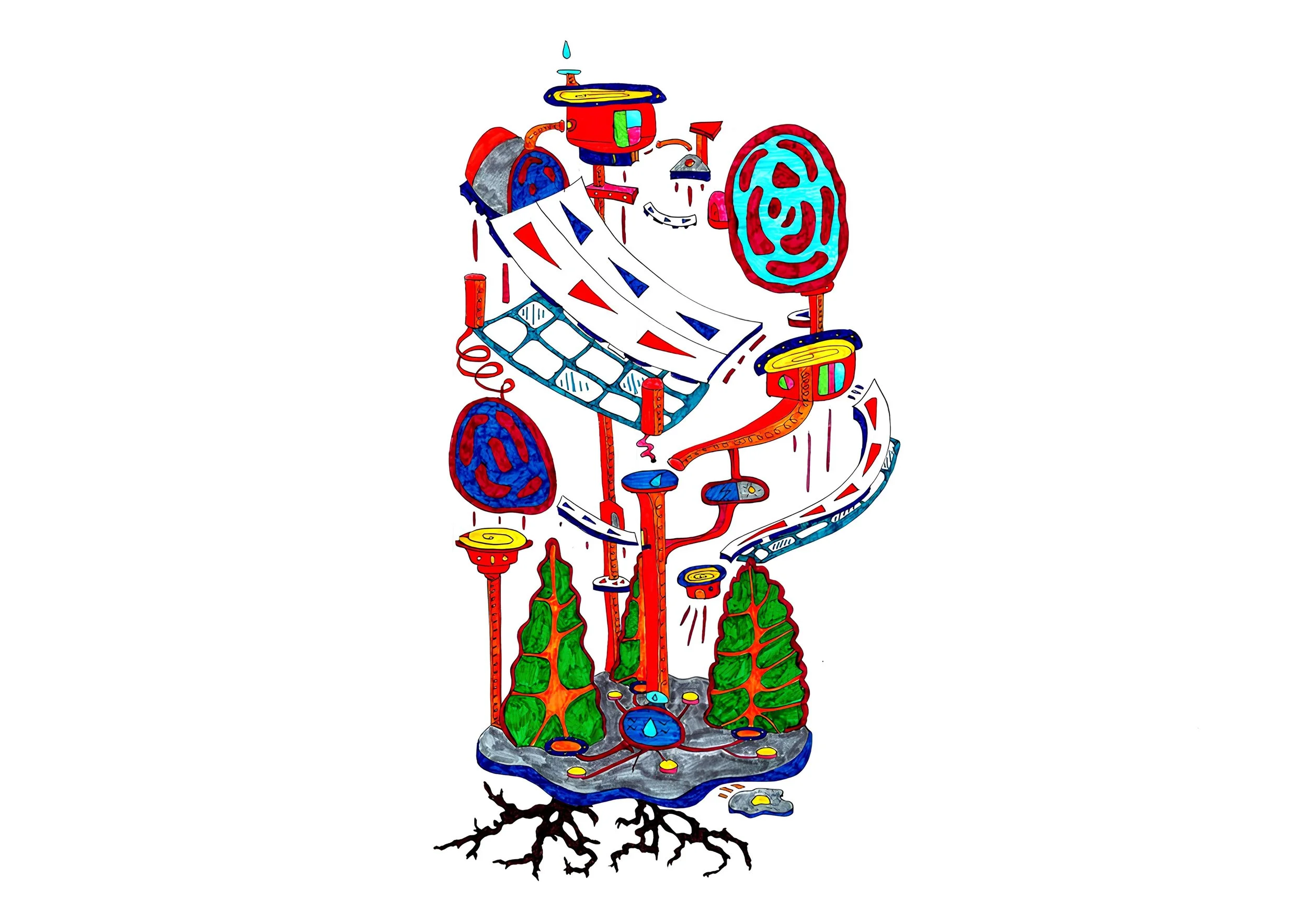 An essential part is water. It flows to the trees below through special structures. If the water doesn't reach the plants, they will die, and this will disrupt the city's natural processes.